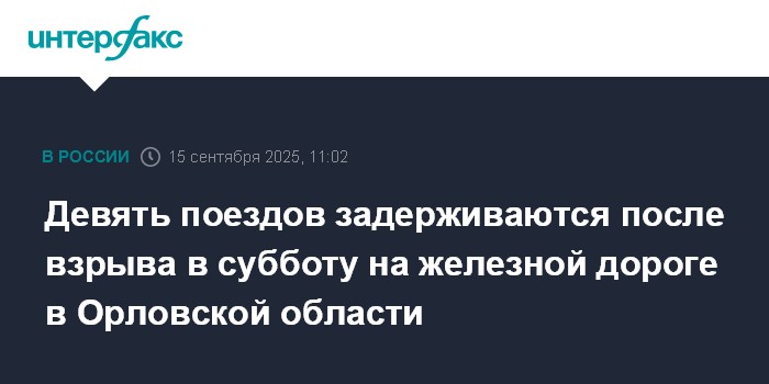 Девять поездов задерживаются после взрыва в субботу на железной дороге в Орловской области