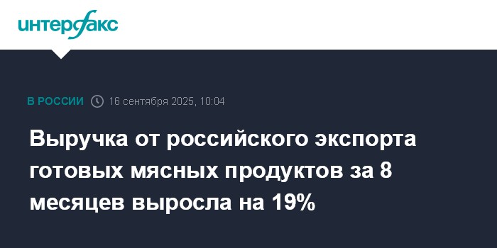 Выручка от российского экспорта готовых мясных продуктов за 8 месяцев выросла на 19%