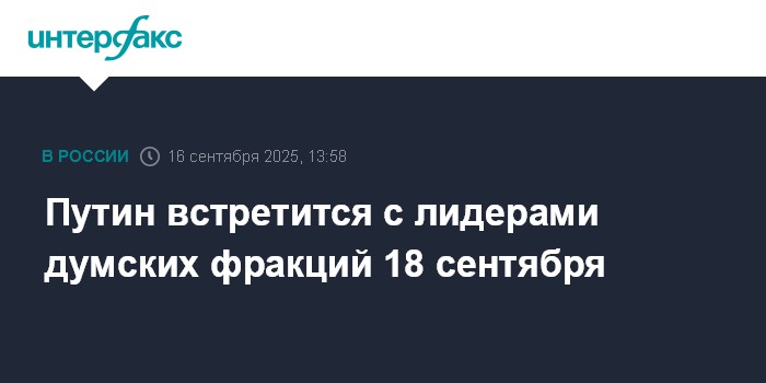 Москва. 16 сентября. INTERFAX.RU - Глава фракции "Единая Россия" Госдумы Владимир Васильев сообщил, что 18 сентября запланирована встреча президента Владимира Путина с председателями думских фракций.