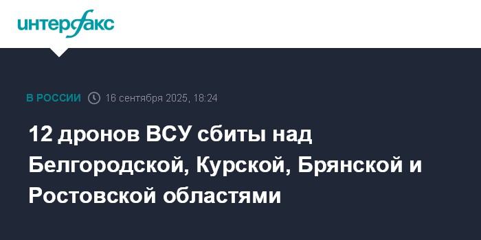 12 дронов ВСУ сбиты над Белгородской, Курской, Брянской и Ростовской областями