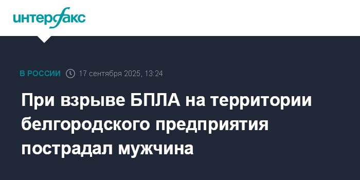 При взрыве БПЛА на территории белгородского предприятия пострадал мужчина