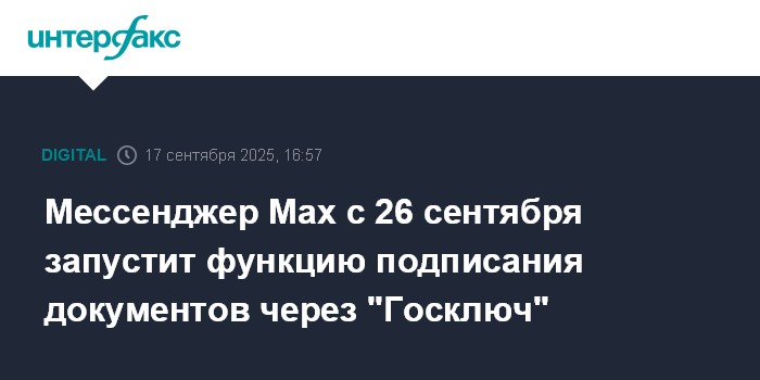 "Мы планируем 26 сентября анонсировать и открыть возможность подписания электронных документов при помощи "Госключа" с каналом передачи документов как раз в мессенджере Max", - сказал Качанов на форуме Kazan Digital Week в среду.