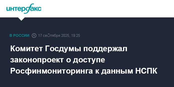 Комитет Госдумы поддержал законопроект о доступе Росфинмониторинга к данным НСПК