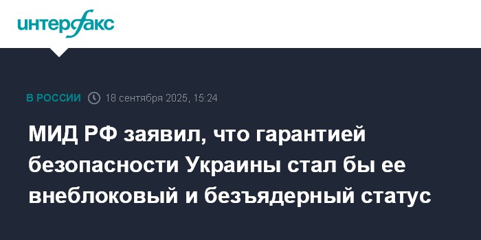 МИД РФ заявил, что гарантией безопасности Украины стал бы ее внеблоковый и безъядерный статус