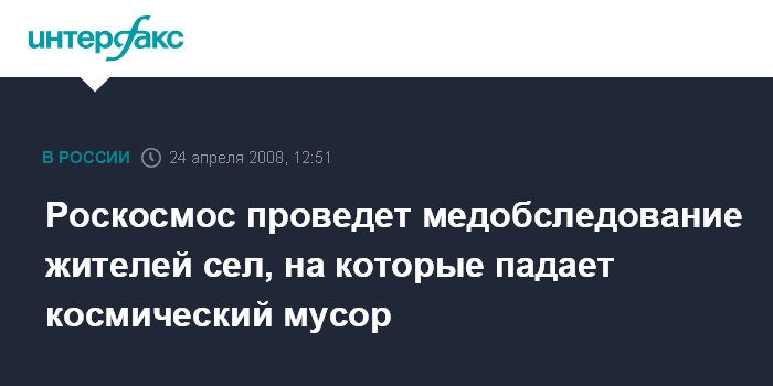 Роскосмос проведет медобследование жителей сел, на которые падает космический мусор
