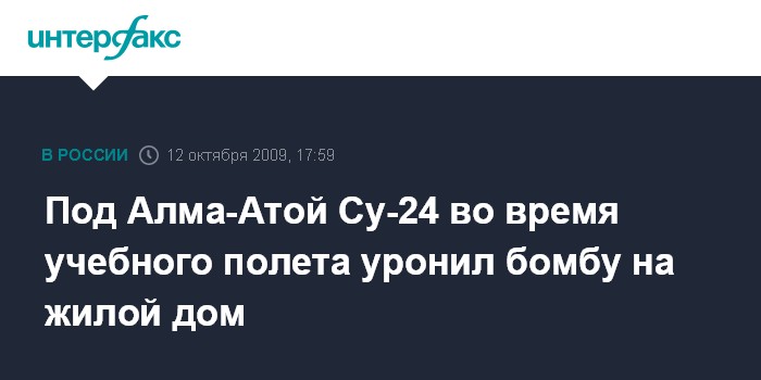 Под Алма-Атой Су-24 во время учебного полета уронил бомбу на жилой дом