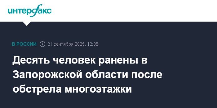 Москва. 21 сентября. INTERFAX.RU - Десять человек пострадали в Васильевке (Запорожская область) после удара ВСУ по многоквартирному дому, сообщил губернатор региона Евгений Балицкий в воскресенье.