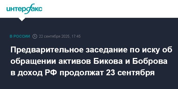 Предварительное заседание по иску об обращении активов Бикова и Боброва в доход РФ продолжат 23 сентября