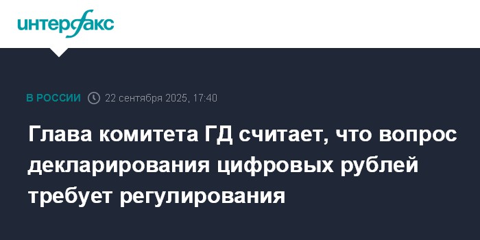 Глава комитета ГД считает, что вопрос декларирования цифровых рублей требует регулирования