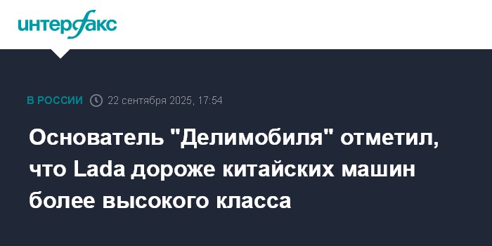 Основатель "Делимобиля" отметил, что Lada дороже китайских машин более высокого класса