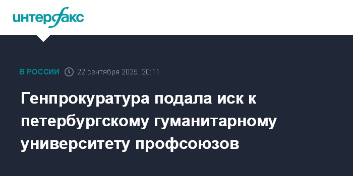 Москва. 22 сентября. INTERFAX.RU - Генеральная прокуратура РФ подала в Арбитражный суд Санкт-Петербурга и Ленинградской области иск к Санкт-Петербургскому гуманитарному университету профсоюзов, следует из данных картотеки арбитражных дел.