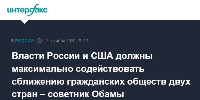 Власти России и США должны максимально содействовать сближению гражданских обществ двух стран – советник Обамы