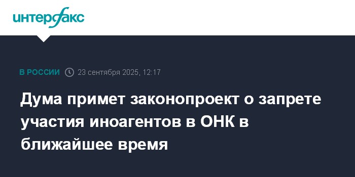 Дума примет законопроект о запрете участия иноагентов в ОНК в ближайшее время