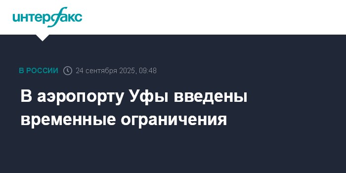 Москва. 24 сентября. INTERFAX.RU - Временные ограничения на прием и выпуск воздушных судов введены в международном аэропорту Уфы, сообщил аэропорт.