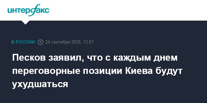 Песков заявил, что с каждым днем переговорные позиции Киева будут ухудшаться