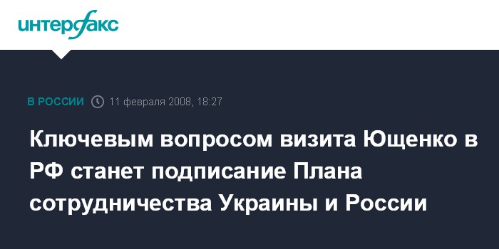 Ключевым вопросом визита Ющенко в РФ станет подписание Плана сотрудничества Украины и России