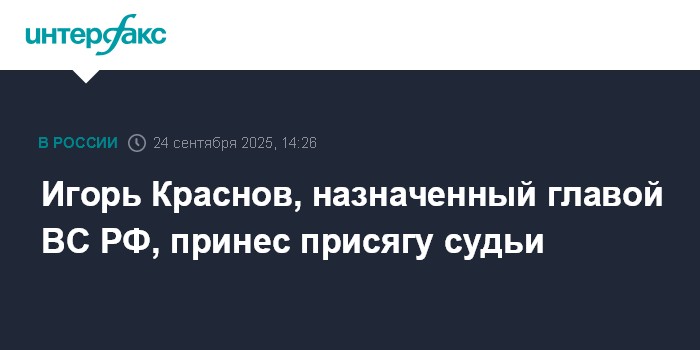 "В торжественной обстановке, в присутствии судей и сотрудников аппарата Верховного суда Российской Федерации, в соответствии с Законом "О статусе судей в РФ" Игорь Викторович Краснов принёс присягу", - сообщили в Верховном суде РФ.