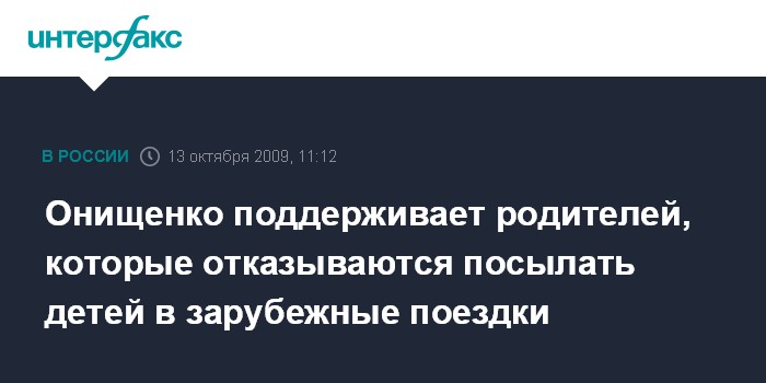 Онищенко поддерживает родителей, которые отказываются посылать детей в зарубежные поездки