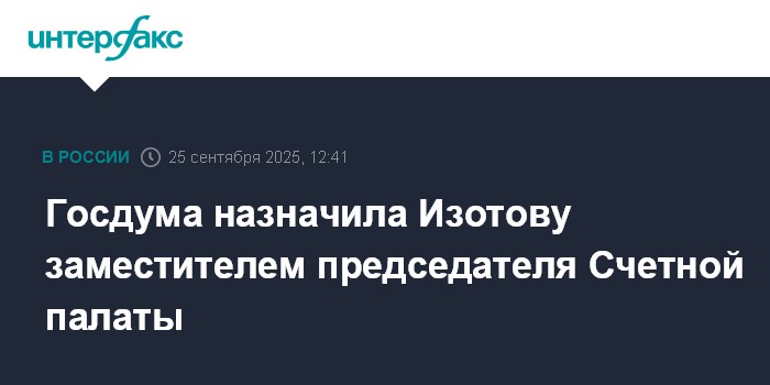 Госдума назначила Изотову заместителем председателя Счетной палаты