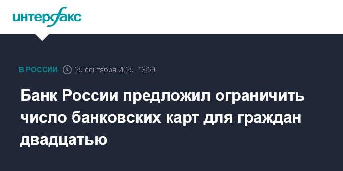 Банк России предложил ограничить число банковских карт для граждан двадцатью