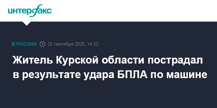 Москва. 25 сентября. INTERFAX.RU - В Рыльском районе Курской области мужчину ранило при атаке дрона на автомобиль, сообщил губернатор региона Александр Хинштейн.