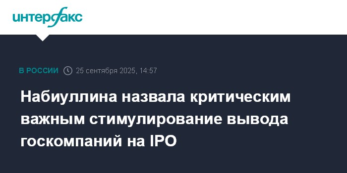 Набиуллина назвала критическим важным стимулирование вывода госкомпаний на IPO