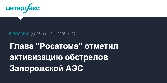 Москва. 25 сентября. INTERFAX.RU - Украина усиливает обстрелы ЗАЭС и атомных объектов в Курской области в ответ на активное взаимодействие России с партнерами в ядерной энергетике, в том числе в Европе, заявил глава Росатома Алексей Лихачев ведущему программы "Москва. Кремль. Путин" телеканала "Россия 1" (ВГТРК) Павлу Зарубину. Отрывок интервью журналист выложил в Telegram.