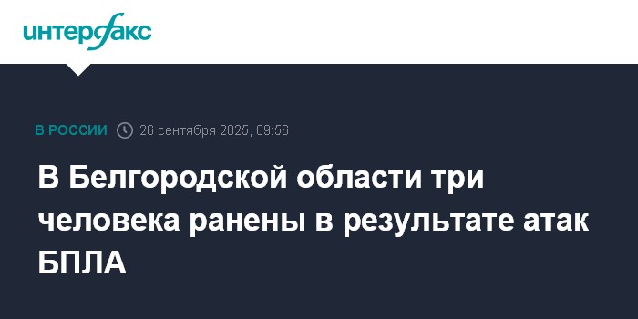 Москва. 26 сентября. INTERFAX.RU - В Шебекинском округе Белгородской области три человека были ранены в результате атак беспилотников, сообщил губернатор Вячеслав Гладков.