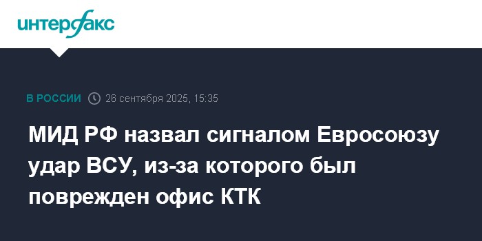 МИД РФ назвал сигналом Евросоюзу удар ВСУ, из-за которого был поврежден офис КТК