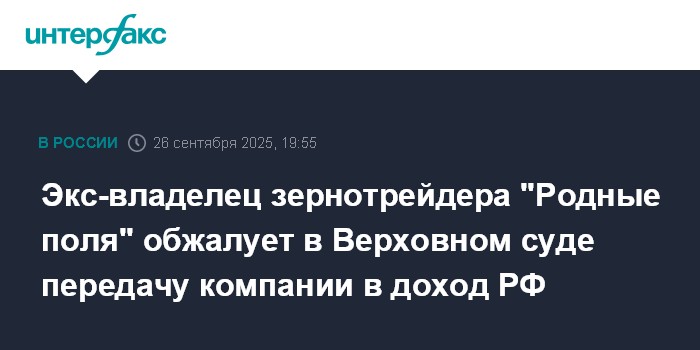 Экс-владелец зернотрейдера "Родные поля" обжалует в Верховном суде передачу компании в доход РФ