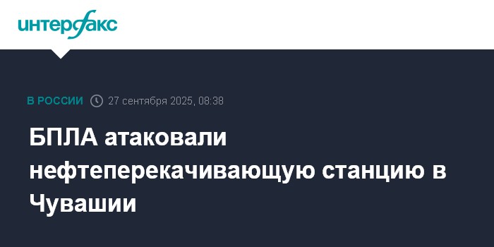 Москва. 27 сентября. INTERFAX.RU - Удар нанесён по нефтеперекачивающей станции в Чувашии, сообщил глава республики Олег Николаев.