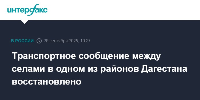 Москва. 28 сентября. INTERFAX.RU - Дорожники восстановили автомобильное сообщение с селами Чародинского района Дагестана, нарушенное из-за схода селя, сообщает пресс-служба ГУ МЧС России по республике в воскресенье.
