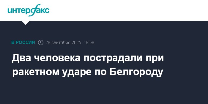 Москва. 28 сентября. INTERFAX.RU - Два человека пострадали в результате ракетного обстрела Белгорода, сообщил губернатор Вячеслав Гладков.