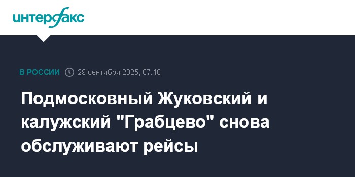 Подмосковный Жуковский и калужский "Грабцево" снова обслуживают рейсы