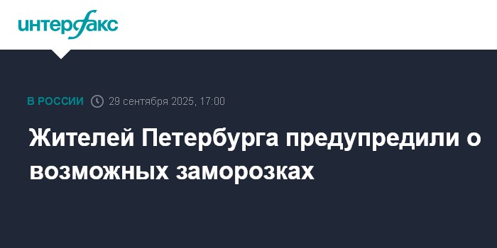 Москва. 29 сентября. INTERFAX.RU - Адмнистрация Петербурга предупредила горожан жителей о потенциально опасной погоде из-за резкого похолодания.