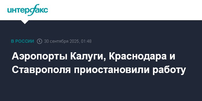 "Аэропорты: Калуга (Грабцево), Краснодар (Пашковский), Ставрополь (Шпаковское). Введены временные ограничения на приём и выпуск воздушных судов", - говорится в сообщении.