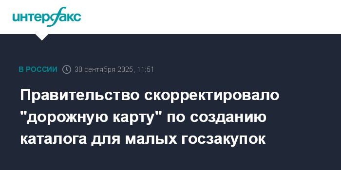 Москва. 30 сентября. INTERFAX.RU - Правительство РФ скорректировало "дорожную карту" по созданию Каталога конкретных товаров (ККТ) для госзакупок малого объема (ЗМО, до 600 тысяч рублей). Соответствующее правительственное распоряжение опубликовано на портале правовой информации.
