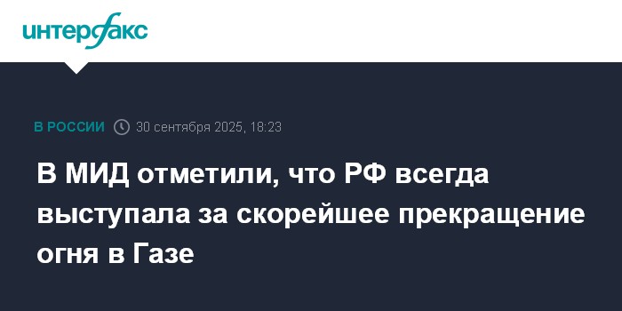 Москва. 30 сентября. INTERFAX.RU - В Москве рассчитывают, что реализация плана президента США Дональда Трампа по урегулированию ситуации в секторе Газа приведет к возобновлению палестино-израильского диалога по комплексному урегулированию всех спорных вопросов, заявили в МИД России.