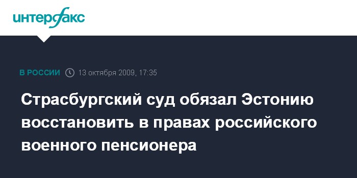 Страсбургский суд обязал Эстонию восстановить в правах российского военного пенсионера