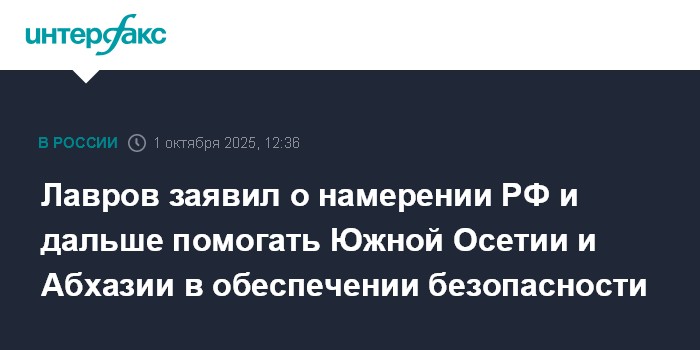Москва. 1 октября. INTERFAX.RU - Россия продолжит содействовать укреплению безопасности и социально-экономическому развитию Южной Осетии, заявил глава МИД РФ Сергей Лавров.