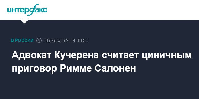 Москва. 13 октября. INTERFAX.RU - Приговор финского суда в отношении россиянки Риммы Салонен должен быть отменен, считает член Общественной палаты России, адвокат Анатолий Кучерена.