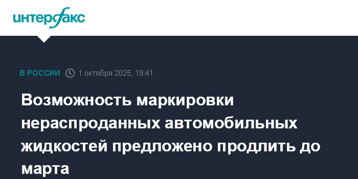 Москва. 1 октября. INTERFAX.RU -Производители и импортеры автомобильных жидкостей и смазочных материалов, как ожидается, получат возможность маркировать нераспроданные и немаркированные остатки до 31 марта 2026 года. Проект соответствующего постановления подготовлен Минпромторгом и опубликован на regulation.gov.ru.