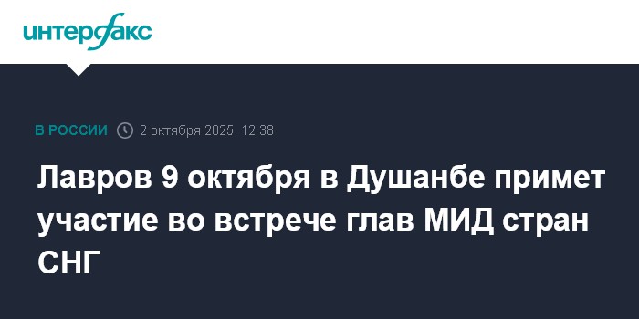"9 октября в Душанбе министр иностранных дел России Сергей Лавров примет участие в очередном заседании Совета министров иностранных дел СНГ", - сказала она на брифинге в четверг.