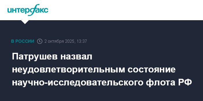 Москва. 2 октября. INTERFAX.RU - Неудовлетворительное техническое состояние российского научно-исследовательского флота приводит к снижению конкурентоспособности России в области освоения морских биоресурсов, заявил помощник президента РФ, председатель Морской коллегии Николай Патрушев.