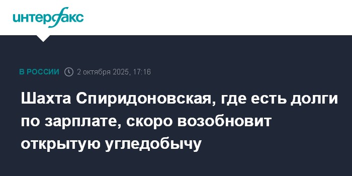 Шахта Спиридоновская, где есть долги по зарплате, скоро возобновит открытую угледобычу