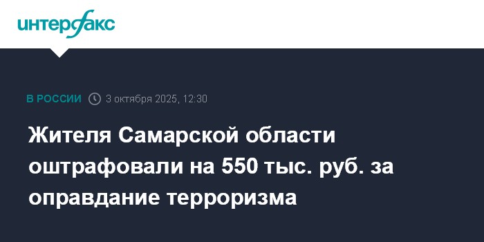 Жителя Самарской области оштрафовали на 550 тыс. руб. за оправдание терроризма