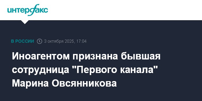 Иноагентом признана бывшая сотрудница "Первого канала" Марина Овсянникова