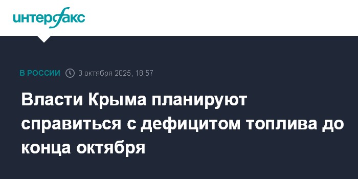 Москва. 3 октября. INTERFAX.RU - Дефицит топлива на заправках Крыма урегулируют до конца октября в три этапа, сообщил глава республики Сергей Аксенов.