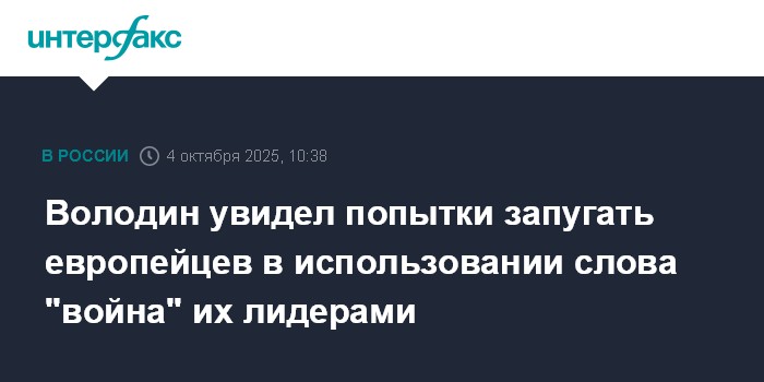 "Особенно преуспели в этом в Англии, Польше, Франции, Германии. В США военная риторика преобладает, но вместе с этим звучит и тема мира. Складывается впечатление: лидеры европейских государств и Евросоюза - фон дер Ляйен, Каллас, Стармер, Навроцкий, Макрон, Мерц и примкнувшие к ним сателлиты из Прибалтики, - втянув себя и других в войну на Украине для самосохранения во власти, пытаются запугать население своих стран", - отметил председатель Госдумы.