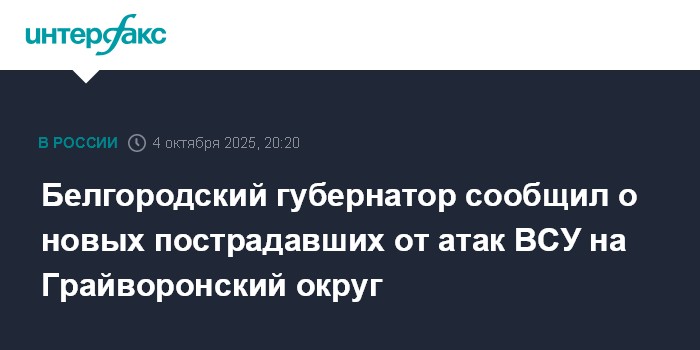 Москва. 4 октября. INTERFAX.RU - Губернатор Белгородской области Вячеслав Гладков сообщил об увеличении числа пострадавших во время ночной атаки на Грайворонский округ.